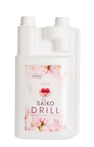 Saiko Drill to gotowy do użycia preparat do jednoczesnego mycia i dezynfekcji wszelkich precyzyjnych narzędzi w tym obrotowych oraz pozostałych inwazyjnych instrumentów medycznych, kosmetycznych czy fryzjerskich. Zalecany jest do dezynfekcji : wierteł, frezów kostnych ze stali, frezów kosmetycznych, twardych metali, diamentów, narzędzi ściernych i polerujących takich jak: gumki silikonowe, płytki ceramiczne oraz narzędzi do leczenia kanałowego.