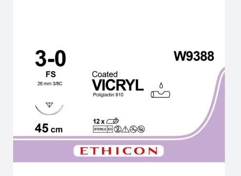 Szew Vicryl, rozm. 3/0 ; 3/8 koła ; igła odw. tnąca 26mm ; 45cm ; op. 12 szt.