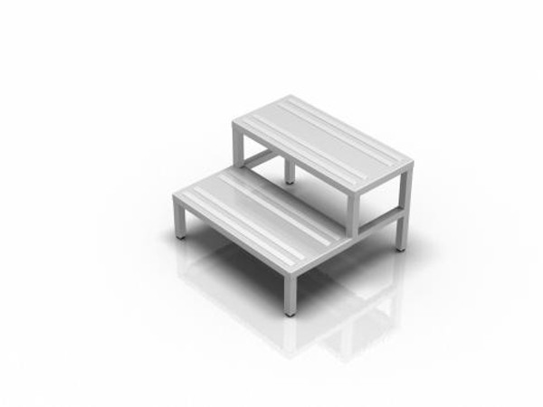 Dwustopniowy podest operacyjny na czterech nóżkach z możliwością wypoziomowania z zakresie 20 mm. Wykonany ze stali nierdzewnej. Na stopniach znajdują się stopnie antypoślizgowe. Wszystkie krawędzie zaokrąglone, bezpieczne.