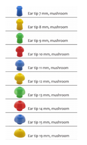 Dostępne w różnych rozmiarach i kształtach, co umożliwia dopasowanie do kanału słuchowego. Wyprodukowane z miękkiego biokompatybilnego materiału - silikonu medycznego (gumy silikonowej).