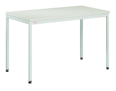 Prostokątny stół biurowy. Stelaż stołu wykonany ze stalowych profili zamkniętych o przekroju czworokątnym ze stopkami wyrównującymi wysokość. Blaty o powłoce z melaminy. Dostarczane w elementach.