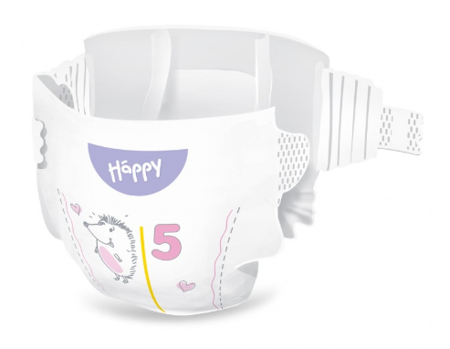 Pieluszki Happy Soft & Delicate w rozmiarze 5 (Junior) są dedykowane dla dzieci o masie 11-18 kg.