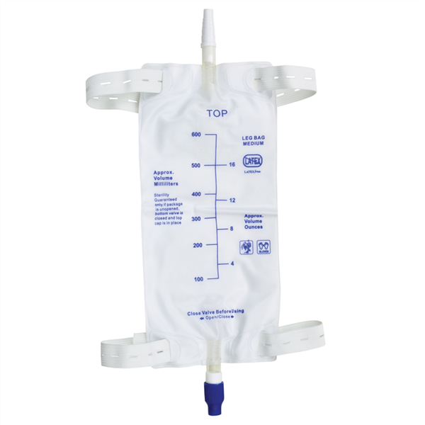 Worek do zbiórki moczu mocowany do nogi