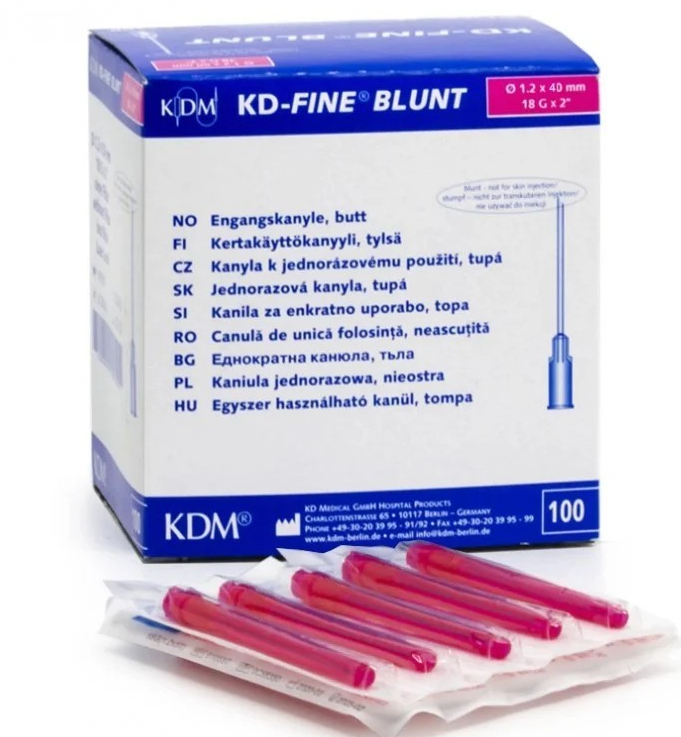 Igła tępa do pobierania leków, j.u. KD-FINE BLUNT 18G 1,2x40mm, 100szt/op z filtrem
