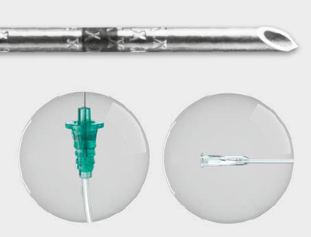 Dzięki znakomitej widoczności wzoru „X” na igle, łatwo jest ją wizualizować w USG.