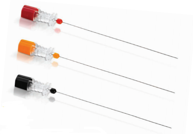 Igła do nakłuć lędźwiowych PENCIL POINT z prowadnicą charakteryzuje się krystalicznie przeźroczystą nasadką, która posiada wewnątrz powiększoną komorę zwiększającą widoczność. Dodatkowo umożliwia szybką wizualizację płynu mózgowo-rdzeniowego, minimalizując jego wypływ. "Pencil point" to perfekcyjnie wykonane stożkowe zakończenie igły z eliptycznym otworem bocznym, umożliwiającym dostęp do pożądanej lokalizacji bez uszkodzenia tkanki. Znacząco redukuje to ryzyko popunkcyjnego bólu głowy.