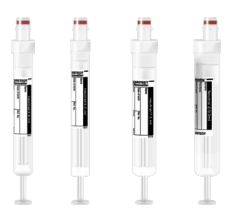 Probówko-strzykawki S-Monovette® przeznaczone do diagnostyki krwi obwodowej. Wyłamanie tłoczka powoduje, że strzykawka zmienia się w probówkę próżniową. Nie zawierają żadnych dodatków, co jest równoznaczne z naturalną koagulacją próbek krwi. Probówko-strzykawki S-Monovette® Neutral (J-5867) pakowane indywidualnie są przeznaczone do wykonania badania na posiew. Pozostałe modele służą do pobierania materiału do analiz dostosowanych do indywidualnych potrzeb użytkownika.