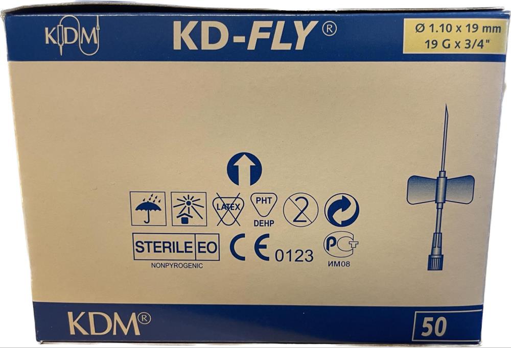 Igła motylkowa do pobierania krwi KD-FLY 19G, 1,10 x 19 mm, wężyk 30 cm luer lock.