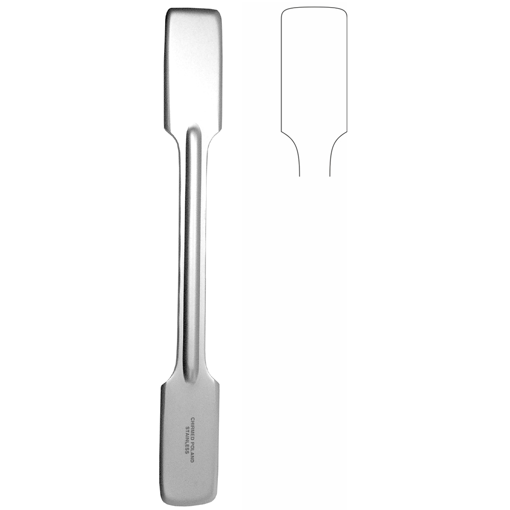 Łopatka apteczna dwustronna do mieszania odczynników i leków. Wykonana ze stali kwasoodpornej gwarantującej wysoką odporność na czynniki chemiczne.