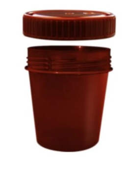 Pojemnik na mocz, brązowy z PP na próbki – z zakrętką z HDPE, 100 ml- opak. 50szt.
