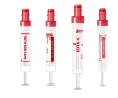 Strzykawki S-Monovette® K3 EDTA do poboru krwi techniką aspiracyjną (strzykawką) lub próżniowo do badań wykonywanych z krwi pełnej obwodowej. Wyłamanie tłoczka powoduje, że strzykawka zmienia się w probówkę ze świeżą próżnią. Wewnątrz S-Monovette® umieszczono preparat K₃EDTA (wersenian trójpotasowy) w formie sprayu. Substancja wiąże wapń z próbki powodując, że pobrana krew długo pozostaje płynna.