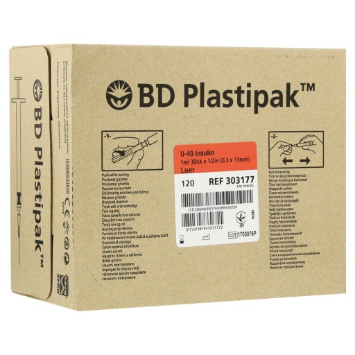 Strzykawka insulinowa BD PLASTIPAK, trzyczęściowa 1 ml z igłą 0,3x13, 120 szt.