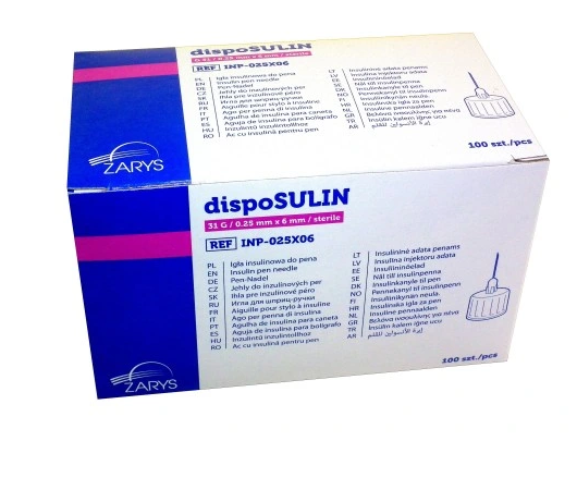 dispoSULIN_Igła insulinowa do pena_0,25mm_x_6mm_31G_sterylna_BF_A100