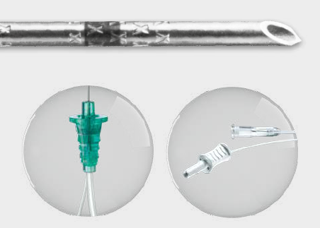 Dzięki doskonałej widoczności wzoru „X” na igle, łatwo jest ją wizualizować w USG.