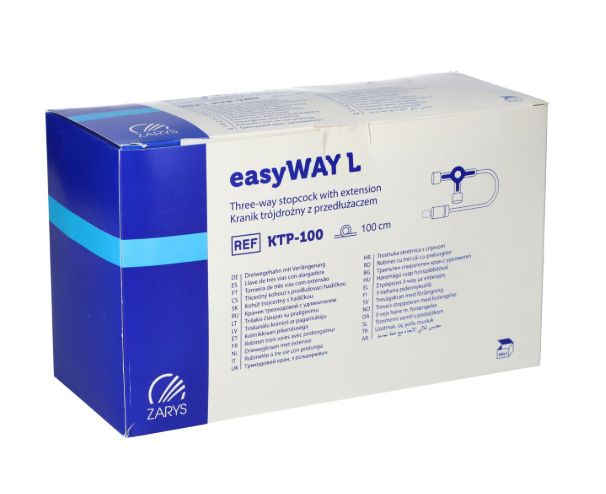 Kranik trójdrozny sterylny z przedluzaczem dl. 100 cm, bez ftalanów