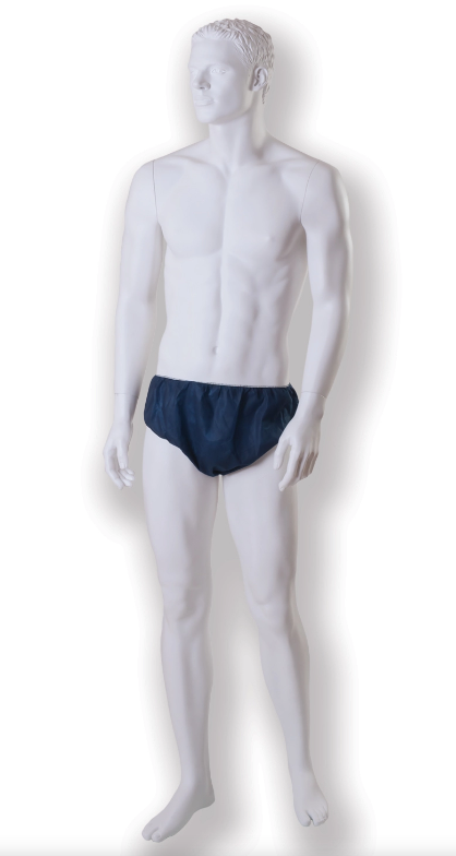 Majtki dla pacjenta jednorazowego użytku są w kolorze granatowym. Zapewniają pacjentowi wysoką intymność. Rozmiar majtek jest uniwersalny.