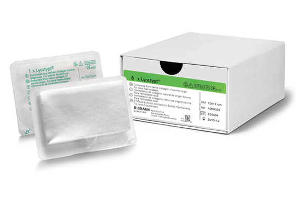 Lyostypt® wykonany jest z naturalnych wchlanialnych wlókien kolagenowych. Dzieki urozmaiconej powierzchni struktura wlókien zapewnia doskonale warunki do laczenia sie ze soba plytek krwi, a dzieki temu wspomaga proces krzepniecia. Zalety: