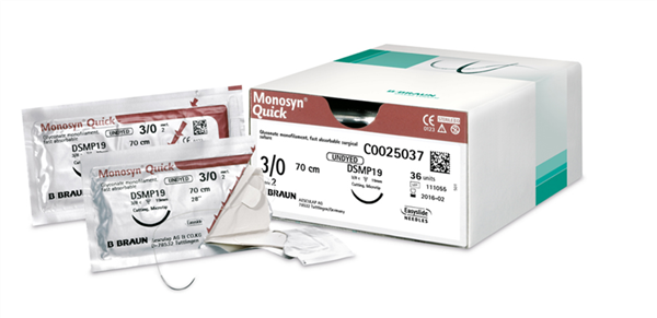 Monosyn®Quick jest syntetycznym, monofilamentowym szwem o krótkim okresie podtrzymywania, wykonanym z glikonatu. Zapewnia doskonale wlasciwosci porecznosci i bezpieczenstwo wezla. Rekomendowany jest do zespolen tkanek miekkich o szybkim procesie gojenia dla róznych dyscyplin. Uzycie Monosyn®Quick gwarantuje doskonaly rezultat kosmetyczny.