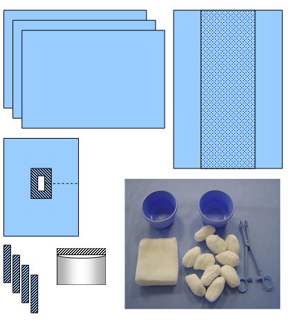 - 1 x Serweta do kateteryzacji z przecięciem i otworem 6 x 7 cm przylepnym