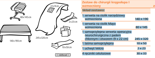- 1 samoprzylepna serweta operacyjna neurochirurgiczna z padem chłonnym i otworem (9 x 22 cm) 245 x 320