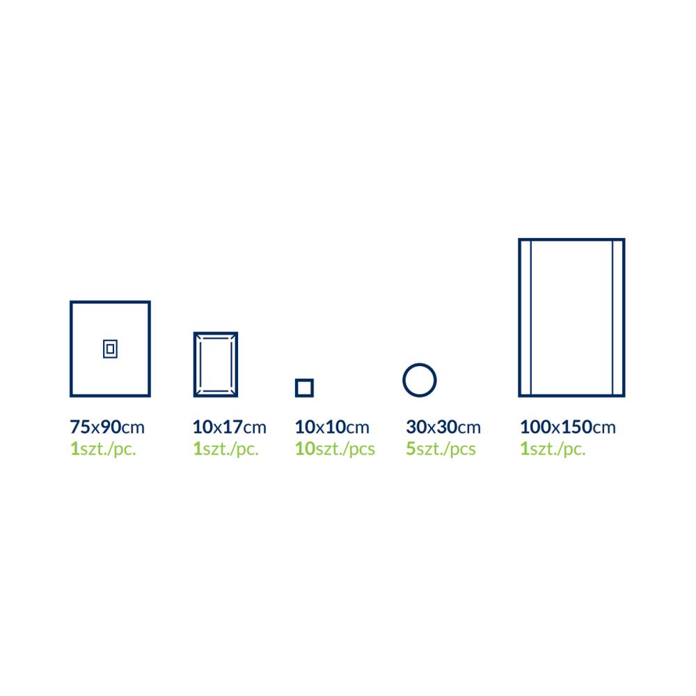 Przygotowane w warunkach sterylnych kompletne zestawy obłożeń chirurgicznych, które zawierają: serwety operacyjne, akcesoria do obłożeń, fartuchy operacyjne dedykowane konkretnym procedurom chirurgicznym.Odpowiednio dobrane właściwości materiałów użytych w obłożeniach pola operacyjnego pozwalają zapewnić bezwzględne bezpieczeństwo oraz wysoki komfort użytkowania personelowi medycznemu i pacjentom.