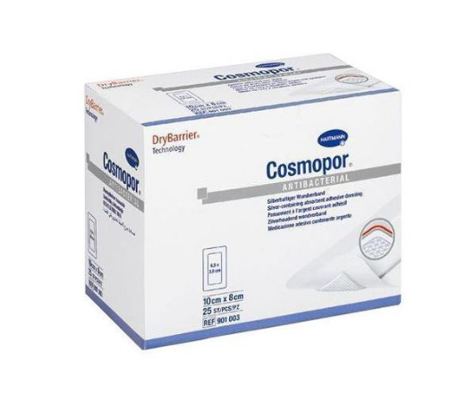 Opatrunek pooperacyjny jałowy Cosmopore E 35 cm x 10 cm, op. 25 szt., to idealne plastry do zaopatrywania pooperacyjnych ran sączących, do jałowego opatrywania drobnych skaleczeń, np przy udzielaniu pierwszej pomocy. Plastry te są samoprzylepne. Zbudowane są z hydrofobowej mikrosiatki, która stanowi bezpieczną warstwę przylegającą do powierzchni rany i powoduje idealne wsiąkanie wydzieliny i transportowanie jej do warstwy chłonnej. Dzięki temu zjawisku sama siatka plastra pozostaje całkowicie sucha, co nie powoduje przyklejania się opatrunku do rany. Powoduje to bezbolesną zmianę opatrunku, który nie przykleja się bezpośrednio do rany.  Warstwę chłonną tworzy 100% bawełniana wata, która dzięki specjalnemu ułożeniu ma znakomite zdolności absorpcyjne, a także spełnia funkcję wyściółki. Opatrunki są całkowicie przepuszczalne dla powietrza i pary wodnej, dzięki czemu skóra oddycha i nie są ograniczone jej naturalne funkcje. Plastry posiadają zaokrąglone rogi, co zapobiega przed niekomfortowym zwijaniem się opatrunku, nawet podczas długiego noszenia na ranie. Zewnętrzna warstwa opatrunku zawiera wodoodporną impregnację, co stanowi perfekcyjna ochronę przed infekcjami i zabrudzeniami rany. Plastry zawierają klej akrylowy, który jest bezpieczny dla skóry i nie powoduje podrażnień.