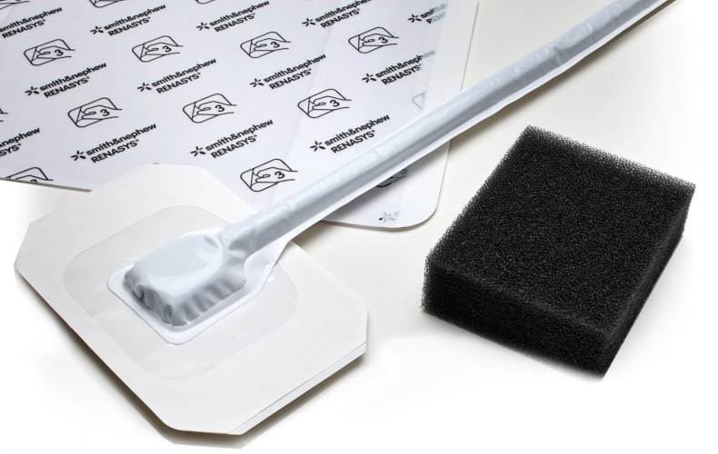 Zestaw opatrunkowy wspomagający podciśnieniową terapię leczenia ran. Niepowtarzalna i innowacyjna budowa opatrunku Renasys F Soft port polega na zastąpieniu twardej rurki z tworzywa sztucznego miękkim i wyściełanym kanałem.