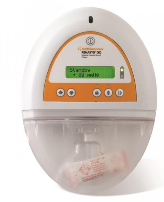 RENASYS GO jest przenośnym, kompaktowym oraz lekkim urządzeniem do podciśnieniowej terapii leczenia ran, pomocnym w leczeniu hospitalizowanych i zdolnych do poruszania się pacjentów.