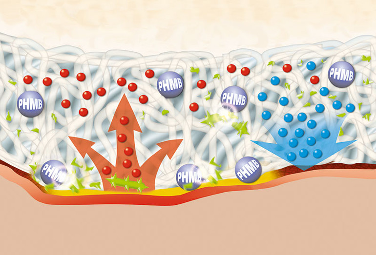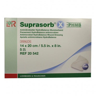 Suprasorb® X + PHMB działa przeciwbakteryjnie, chroni przed wnikaniem licznych szczepów drobnoustrojów*. Badanie in vitro wykazało bardzo szybkie i prawie całkowite uwolnienie poliheksanidu (PHMB) z opatrunku po upływie 24 h. Ponadto, w zależności od stanu rany, produkty ją nawilżają lub wchłaniają nadmiar wysięku. Dzięki temu powstaje wilgotne środowisko rany. Zmiana opatrunku następuje w sposób bezbolesny. Materiał umożliwia łatwe dopasowanie do danego kształtu i głębokości rany. Dlatego produkty nadają się również do stosowania na trudno dostępne miejsca na ciele. Pozytywne właściwości opatrunku przeciwdziałają przyklejaniu do rany lub do opatrunku wtórnego. Wilgotne środowisko dające efekt chłodzenia jest odczuwane przez pacjentów jako przyjemne i łagodzące ból.