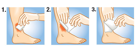 Należy oczyścić ranę zgodnie z aktualnym standardem postępowania i następnie dokładnie na sucho pokryć powierzchnię rany sterylnym kompresem.