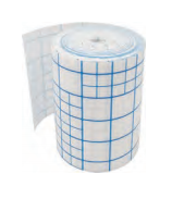 Przylepiec włókninowy z rozciągliwej włókniny na rolce, z silikonowym papierem zabezpieczającym.