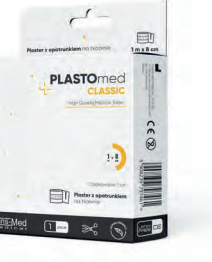 Przylepiec tkaninowy z opatrunkiem do cięcia PLASTOmed Classic, 1 m x 8 cm
