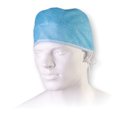 Czepek typu furażerka z trokami, Spunlace Mesh, niebieski, op. 100 szt.