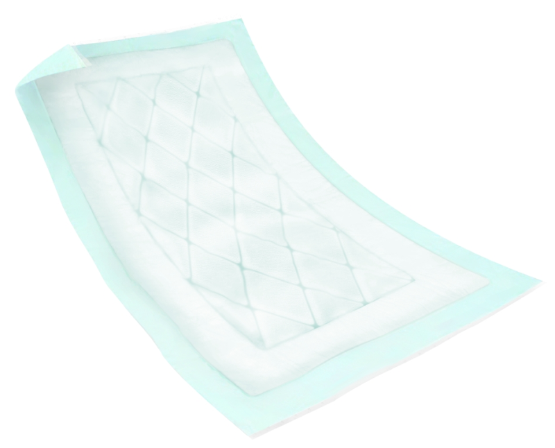 oraz sklepach medycznych. Wodoodporna powłoka zewnętrzna podkładu (PE) i 4 uszczelnione krawędzie zapewniają nieprzemakanie podkładu co zwiększa komfort pacjenta. Dostępne w różnych rozmiarach i poziomach chłonności.