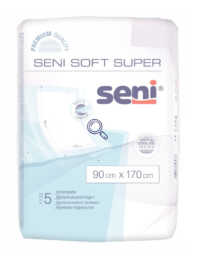 Podkłady higieniczne Seni Soft Super to wyrób chłonny jednorazowego użytku. Stosowane jako dodatkowe zabezpieczenie zapobiegają zawilgoceniu lub ubrudzeniu materaców, kanap, krzeseł, wózków inwalidzkich i pościeli.