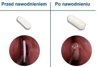 Po nawodnieniu opatrunek rozszerza się wypełniając jamę nosową.