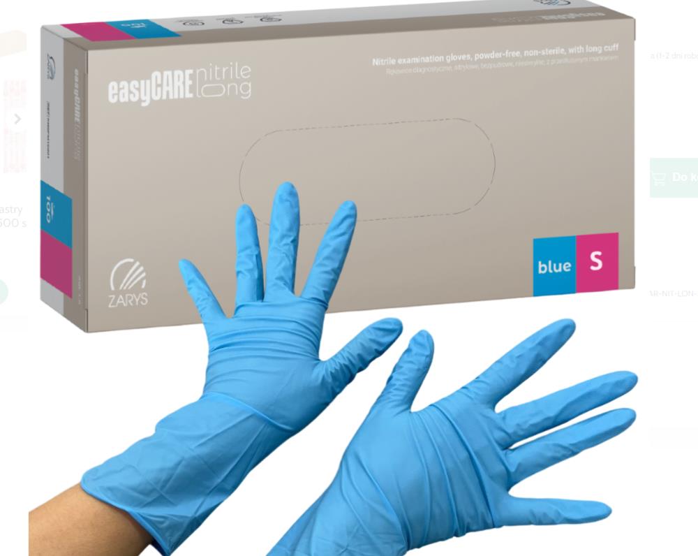 Rękawice easyCARE wykonane z nitrylu, z rolowanym mankietem, polimerowane na całej powierzchni. Z zewnątrz, mikrotekstura na całej dłoni z dodatkową teksturą na końcach palców. Wyrób jednorazowego użytku, zgodny z normami technicznymi, dopuszczony do kontaktu z żywnością, przeznaczony do diagnostyki pacjenta, zapewnia barierę dla transmisji mikroorganizmów pomiędzy operatorem a pacjentem, minimalizuje ryzyko zakażeń krzyżowych; zalecany podczas procedur o podwyższonym ryzyku zakażenia.