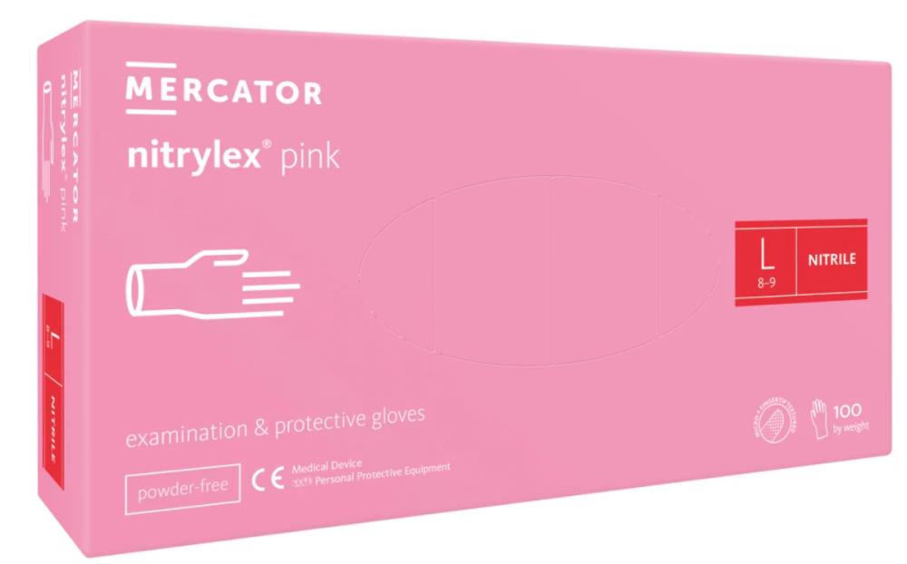Wysokiej jakości medyczne, diagnostyczne i ochronne, niejałowe, bezpudrowe, jednorazowe rękawice nitrylowe w kolorze różowym