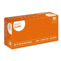 rekawiczki diagnostyczne Protect Clinic Latex Powder Free w kolorze bialym. Dostepne sa nastepujace rozmiary: XS, S, M, L, XL.
