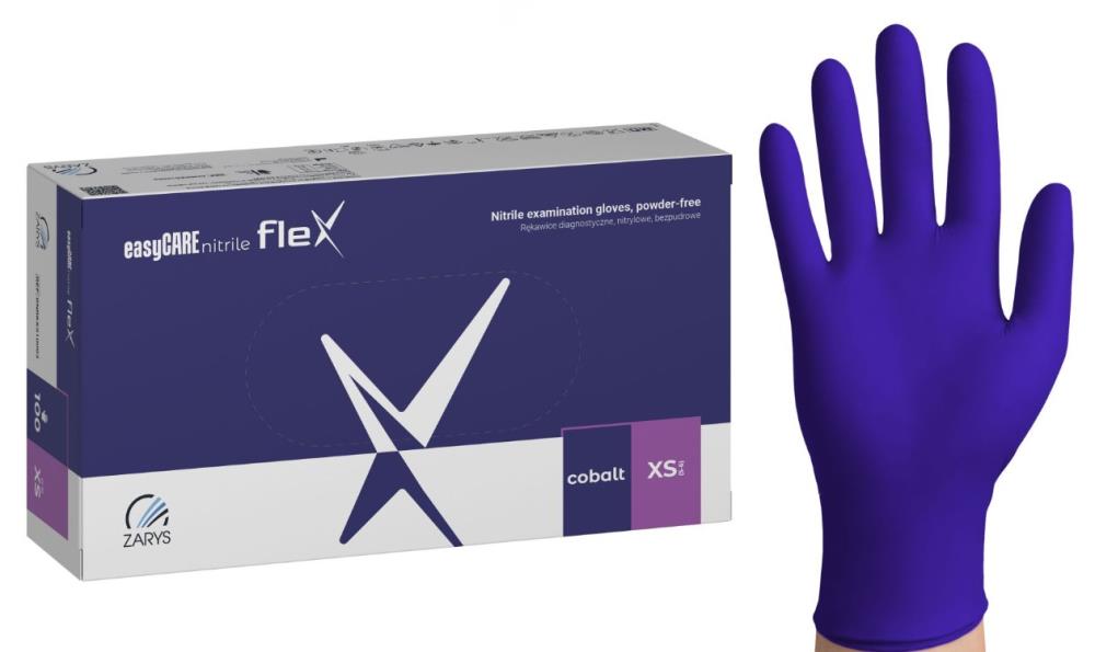Rękawice diagnostyczne easyCARE nitrile_flex_nitrylowe_bezpudrowe_niesterylne_kobaltowe_Rozm_XS_A100
