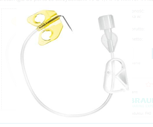 • igła ze skrzydełkami dostępna jest w wersji z drenem w kształcie litery Y i bez łącznika Y, wtedy możliwe jest (podczas badania CT) podawanie środka kontrastującego pod wysokim ciśnieniem