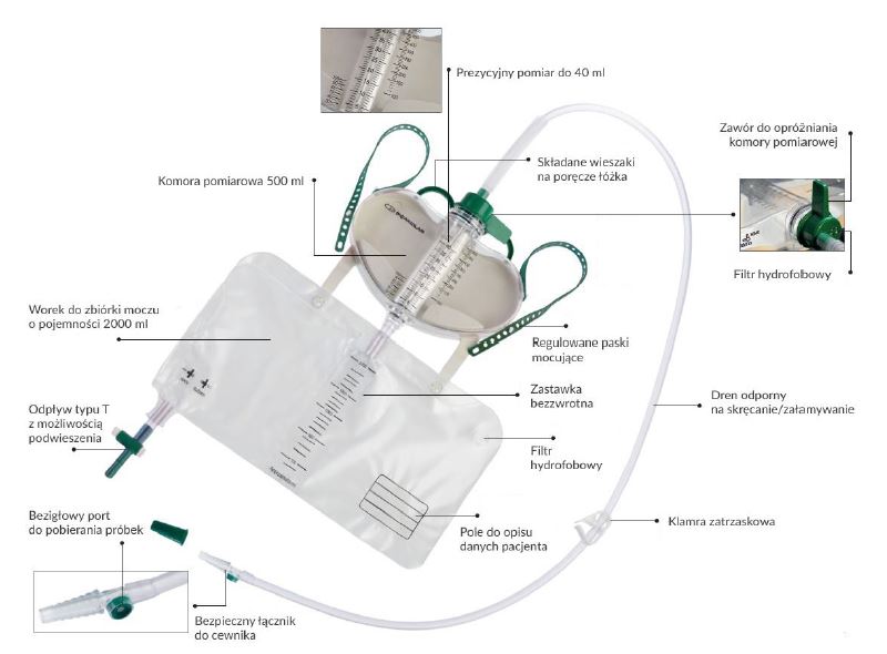 - komora zbiorcza 500 ml umożliwiająca bardzo dokładne pomiary diurezy