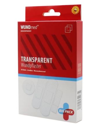 Zestaw plastrów zawiera 50 wodoodpornych plastrów w czterech różnych rozmiarach.