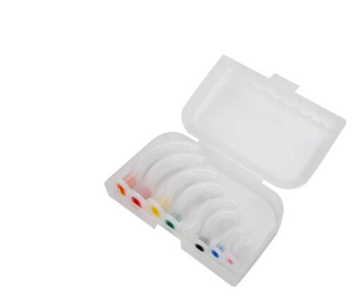 Zestaw 8 sztuk rurek ustno-gardłowych typu Guedel’a w plastikowym pudełku służących udrożnianiu górnych dróg oddechowych. Produkt sterylny, wykonany z przezroczystego PVC umożliwiającego stwierdzenie ciała obcego w świetle rurki.