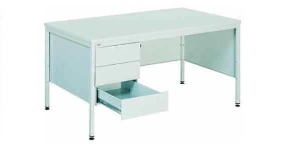 Biurko wyposażone w jeden kontenerek z trzema szufladami. Stelaż biurka wykonany ze stalowych profili zamkniętych o przekroju czworokątnym za stopkami wyrównującymi wysokość. Blat grubości 25 mm z powłoką z melaminy. Szuflady zamykane od frontu. Dostarczane w elementach.
