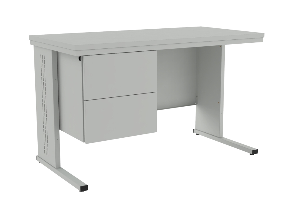Metalowe Biurko lekarskie typ Bim 212 S. Metalowy Kontenerek biurka Bim 212 s zbudowany z dwóch metalowych szuflad dostosowanych do formatów na karty chorób pacjentów. Szuflady posiadają zamek centralny zamykany na zamek kluczowy. Do zamków dołączone są dwa klucze. Blat biurka wykonany z płyty pokrytej melaminą. Daje to możliwość dezynfekcji biurka. Kontenerek standardowo montowany jest po lewej stronie, istnieje możliwość umieszczenia kontenera po prawej stronie - należy to zgłosić przy składaniu zamówienia.