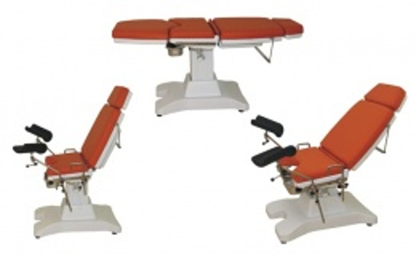 Fotel ginekologiczny OT03-S oparty na kolumnie przeznaczony do badań w ginekologii, urologii i drobnych zabiegach chirurgicznych. Fotel składa się z trzech część: oparcia pleców, siedziska i podnóżka.