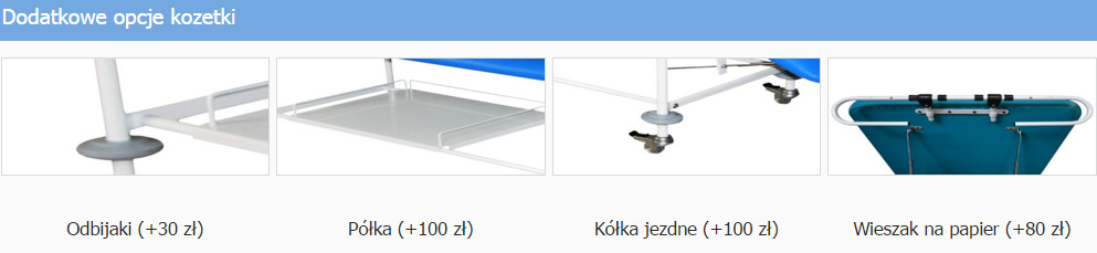 Kozetka NORMA przeznaczona jest do przeprowadzania badań lekarskich oraz wykonywania drobnych zabiegów medycznych. Posiada szeroki blat oraz regulowany podgłówek. Wykręcana stopka w jednej z nóg kozetki pozwala na poziomowanie jej na nierównej powierzchni. Konstrukcja kozetki NORMA wykonana jest ze stali pokrytej farbą proszkową. Blat pokryty jest wysokiej jakości materiałem skóropodobnym.