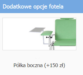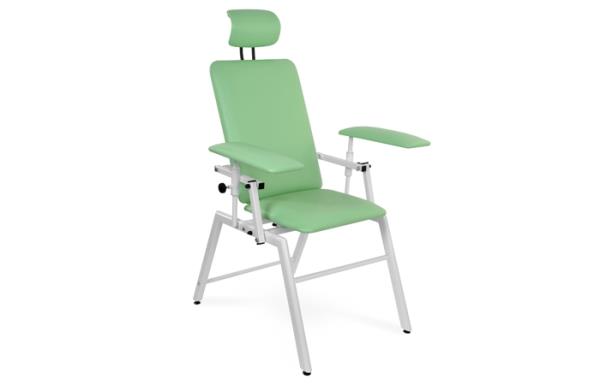 Fotel do pobierania krwi, stanowi wyposażenie gabinetów lekarskich, przychodni, szpitali oraz laboratoriów. Wyposażony jest w dwa podłokietniki regulowane w dwóch płaszczyznach (góra-dół, na boki) oraz regulowane oparcie. Siedzisko, oparcie i podłokietniki fotela pokryte są materiałem skóropodobnym dostępnym w szerokiej gamie kolorystycznej. Fotel posiada stabilną stalową konstrukcję malowaną proszkowo w kolorze białym. Fotel do pobierania krwi występuje w wielu kolorach w materiale skóropodobnym i dostępny jest w wielu wariantach kolorystycznych.