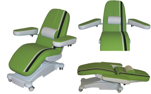 Fotel do podawania cytostatyków EURO32 przeznaczony jest do transfuzji krwi i do gabinetów hemodializowanych. Fotel posiada dwie regulacje sterowane za pomocą pilota przewodoweg: oparcie pleców oraz oparcie nóg. Fotel jest pokryty zmywalnym wodoodpornym materiałem jest wygodne i ortopedyczne zaprojektowane. Wygodne materace pozwalają na komfortowe przebywanie pacjenta przez dłuższy okres czasu /wystarczające na wygodne przebywanie pacjenta podczas kilkugodzinnej terapii. Podłokietniki są regulowane ręcznie, przesuwają się wraz z oparciem, w tym samym czasie.